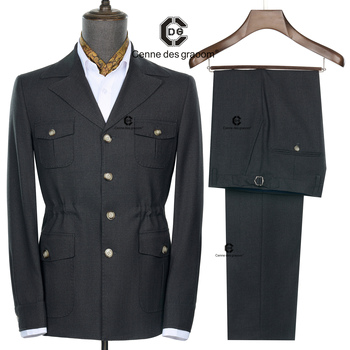 Cenne Des Graoom 2025 abiti da uomo doppiopetto a righe grigio chiaro con tasche applicate su misura per abiti da ufficio da matrimonio Bestman
