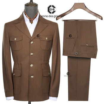 Cenne Des Graoom abiti da uomo 2025 a righe marrone con tasche applicate su misura per abiti da ufficio da riunione matrimonio